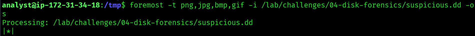 foremost -t png,jpg,bmp,gif -i suspicious.dd -o /tmp/carved-sus
