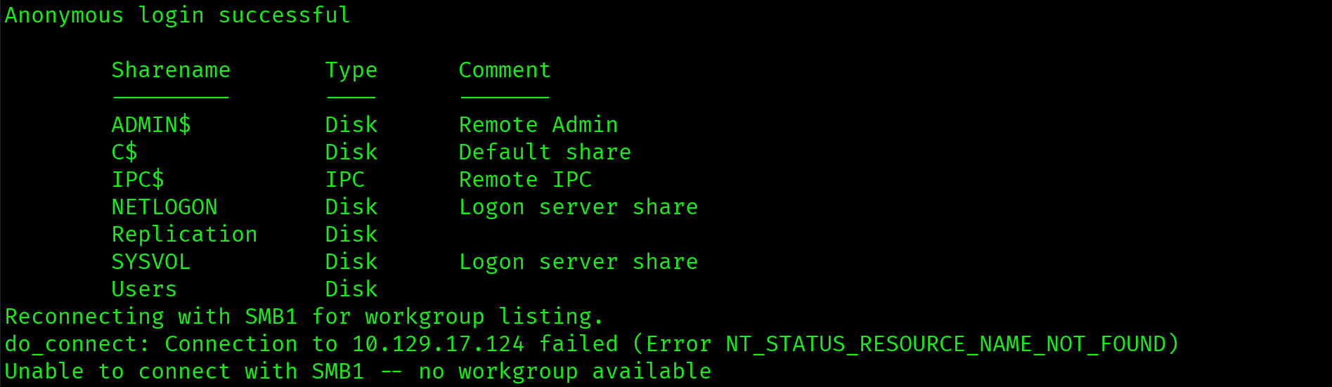 $ smbclient -L //10.129.17.124 -N