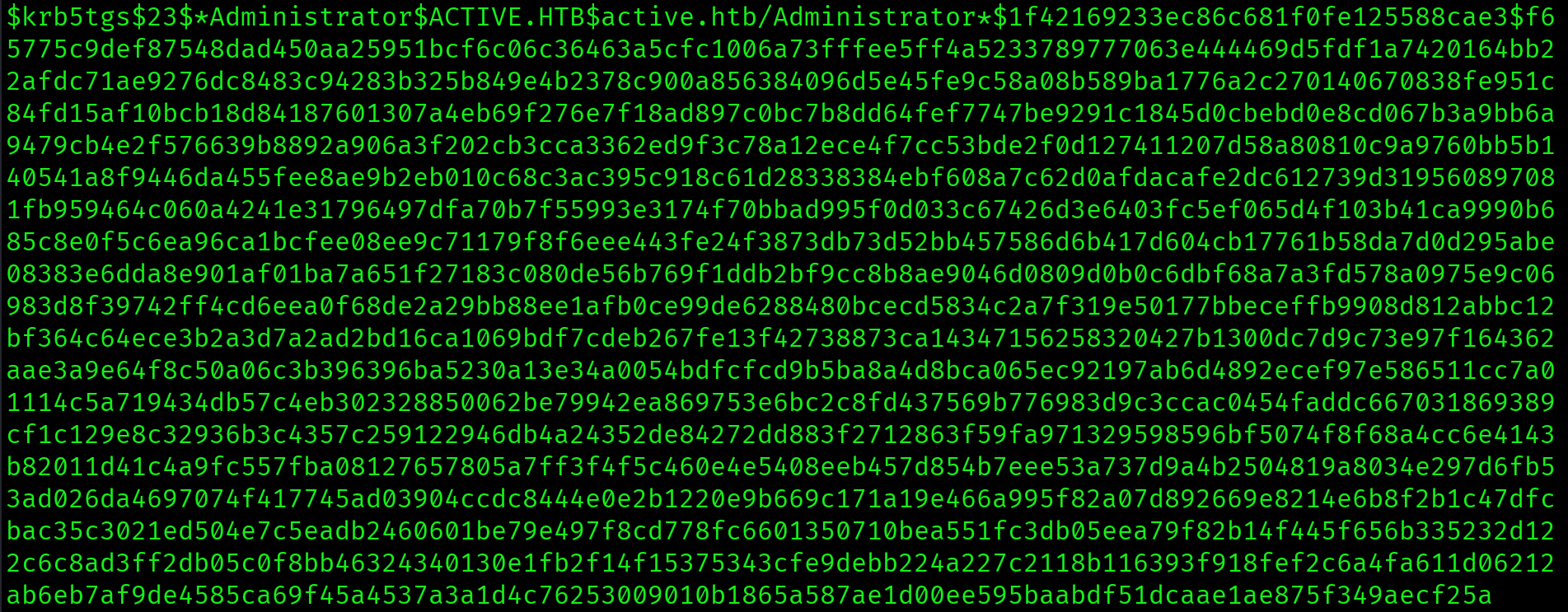 $krb5tgs$23$*Administrator*ACTIVE.HTB*...:Ticketmaster1968