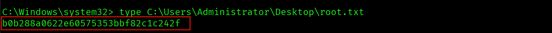 C:\Windows\system32> type C:\Users\Administrator\Desktop\root.txt