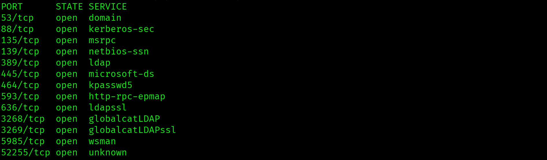 $ nmap -p- --min-rate 1000 -oN cicada-all-ports.txt 10.129.21.190